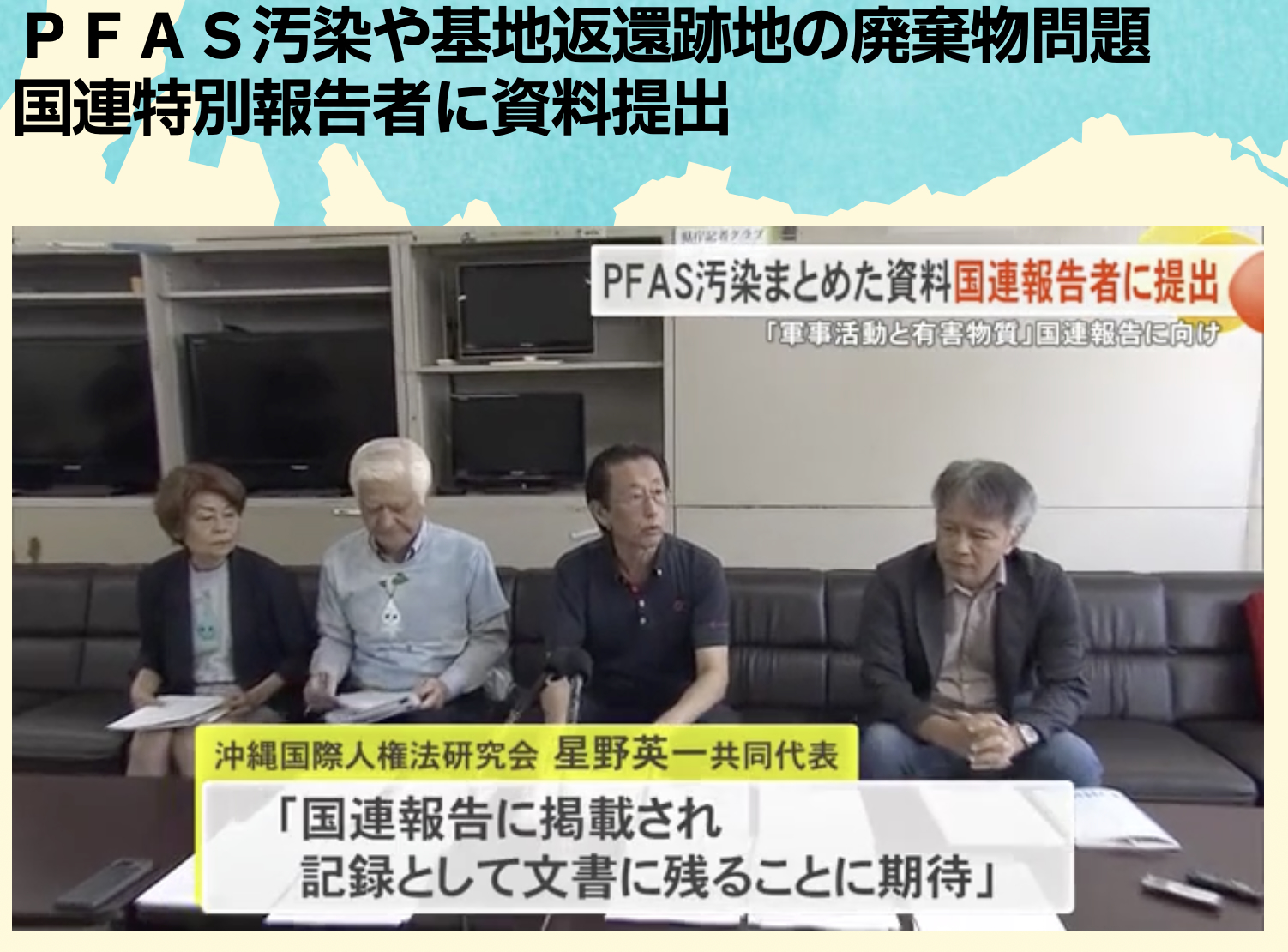 2025年4月1日、Okinawa Environmental Justice Projectと沖縄国際人権法研究会は共同で報告書「沖縄における米軍の中部訓練場と北部訓練場:軍事活動と有害物質」を、有害物質と人権に関する国連人権理事会の特別報告者であるマルコス・A・オレリャーナ博士に提出しました。宜野湾ちゅら水会も沖縄国際人権法研究会と共同でPFAS問題に関する2つの報告書を提出しています。今回の提出は、特別報告者の「軍事活動と有害物質に関する意見の呼びかけ」に応えたものです。